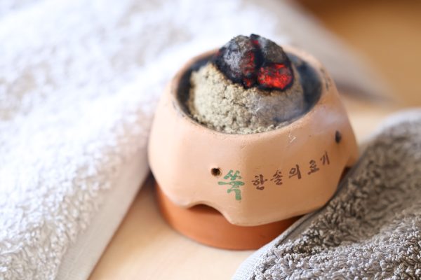 Moxibustion is a Traditional Asian Medicine therapy which consists of burning dried mugwort (moxa) on particular points of the body. Mugwort is a common name of several species of aromatic plants in the genus Artemisia, and are used medicinally especially in Asian traditional medicine. Some mugworts have also been found a use in modern medicine for their anti-herpetic effect. They are also used as a herb to flavour food. In Korea, mugworts were also used for pain, non-medicinal consumption. In South Korea, mugworts are still used as a staple ingredient in many dishes including rice cakes and soup.